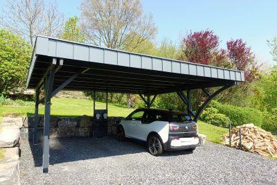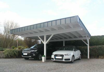 Gestalten Sie sich Ihr Carport, wie Sie es brauchen.  Auf der Produktseite können Sie Zubehör wählen, wie Seitenwände oder Attika-Blende.